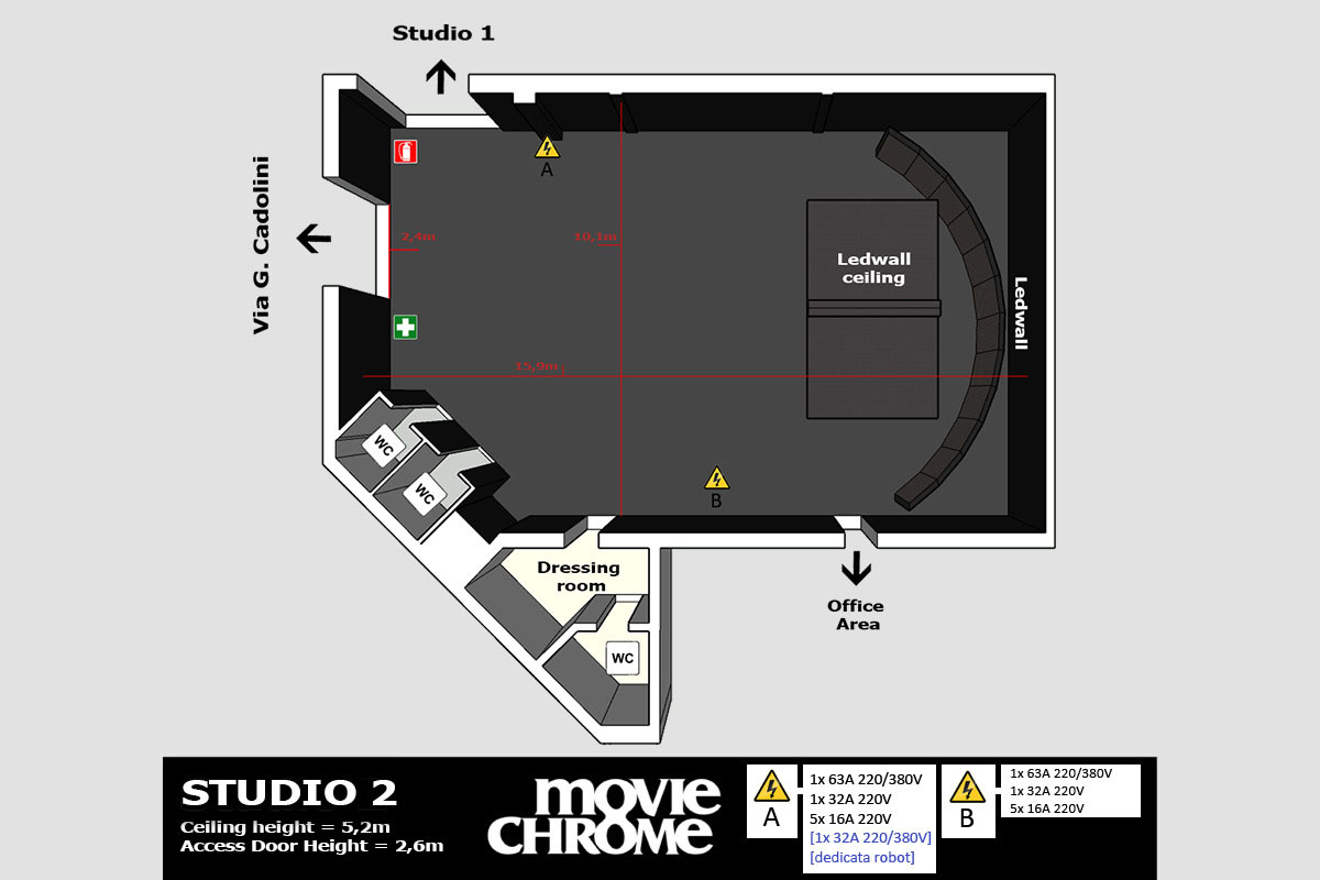Our Ledvolume Studio 2 is an open space of 170 square meters and seamlessly connects with Studio 1 and Studio 0, expanding the overall area to 900 square meters when required.